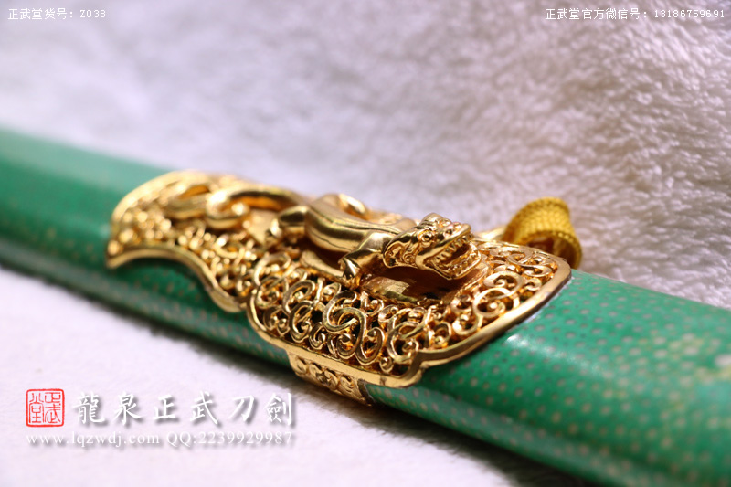 作品名称:手锻光复级绿鱼皮鞘镂空紫电