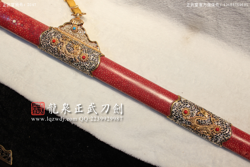 作品名称: 手锻超级光复级红鱼皮鞘八龙式装切刃造唐刀