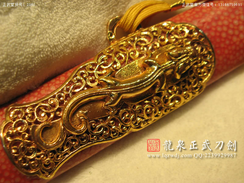 作品名称:手锻超级光复级红鱼皮鞘镂空装龙泉剑