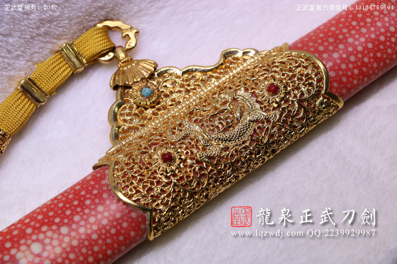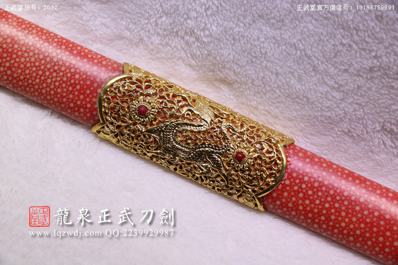 作品名称:手锻包钢敷土烧刃新版豪华装红鱼皮鞘诸刃造唐刀