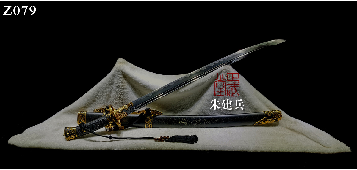 作品名称:手锻草钢锻黑鱼皮鞘豪华新版清官刀