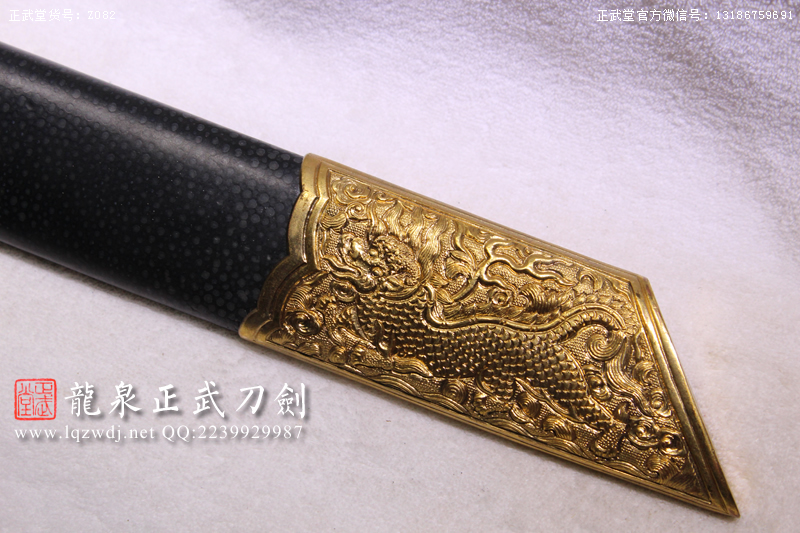 作品名称:闽钢锻黑鱼皮鞘铜装康熙战刀