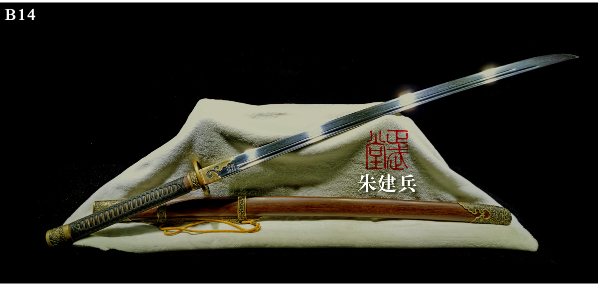作品锻造工艺说明:折叠锻打2000余层,夹钢复合,剑刃采用一般研磨工艺,硬度:56度。